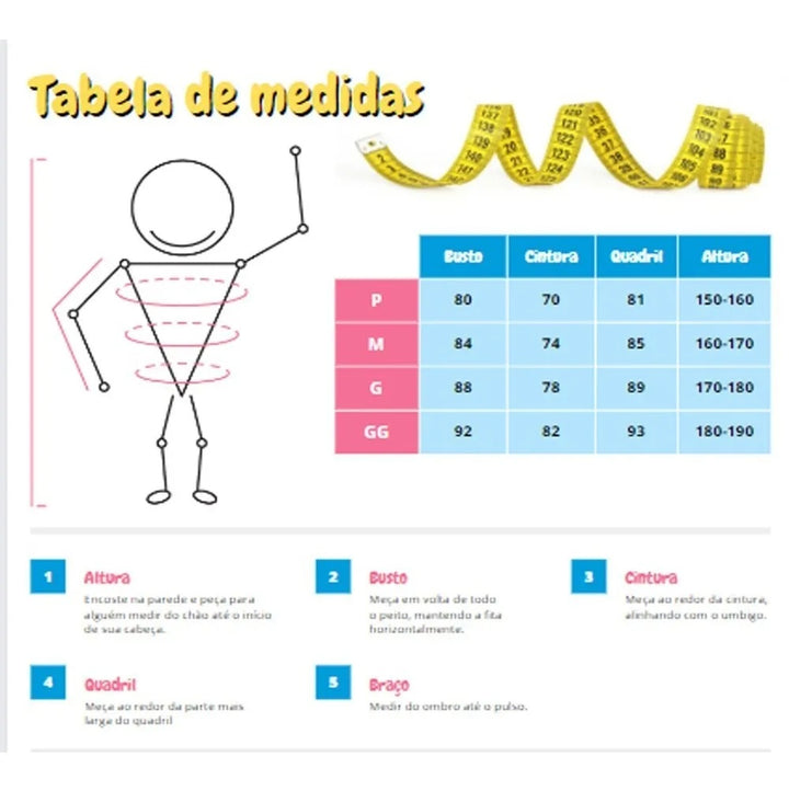 Tamanho: P, M e G conforme tabela ilustrativa nas imagens do anúncio