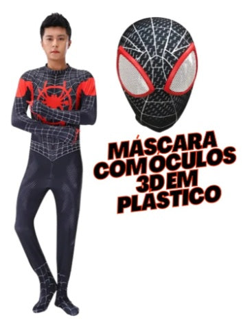 COSPLAY FANTASIA HOMEM ARANHA SPIDERMAN MILES MORALES ADULTO PREMIUM PROFISSIONAL + FACESHELL -
